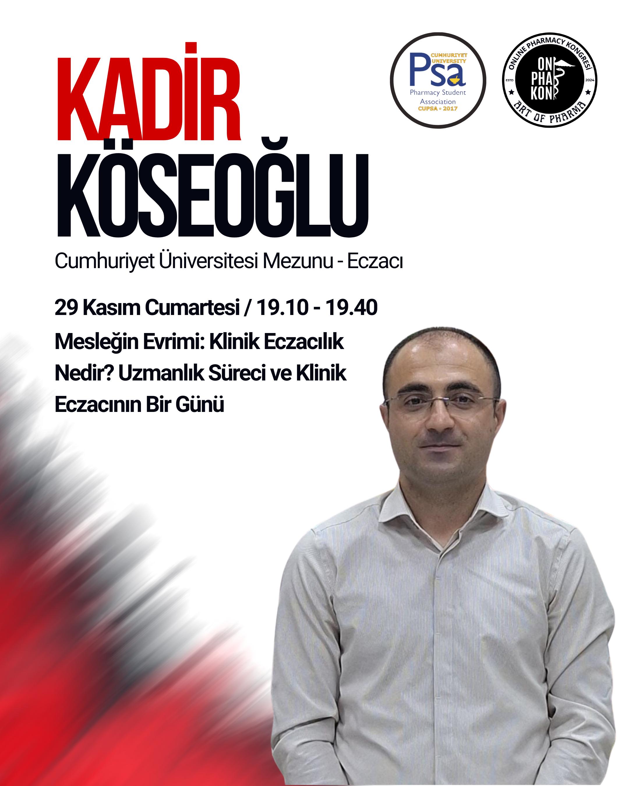 Fakültemiz ilk mezunlarından Ecz. Kadir Köseoğlu , Fakültemiz kulüplerinden CUPSA'nın paydaşlarından biri olduğu Online Eczacılık Kongresi - Onphakon'da fakültemizi temsil ediyor.