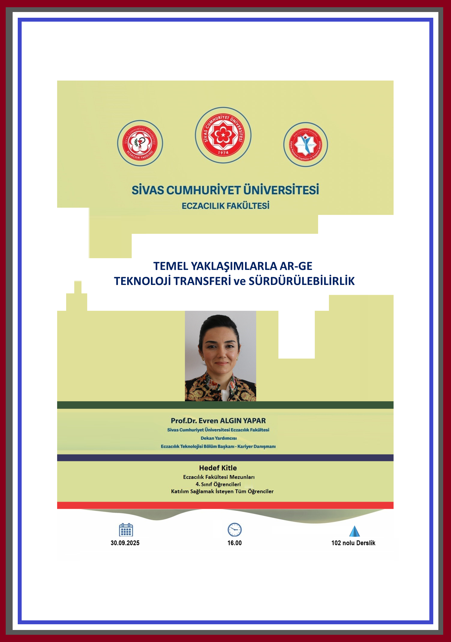 Fakültemiz kariyer danışmanlarından Prof. Dr. Evren ALĞIN YAPAR tarafından öğrencilerimize yönelik kariyer etkinliği programı kapsamında "Temel Yaklaşımlarla AR-GE Teknoloji Transferi ve Sürüdürülebilirlik" konulu seminer gerçekleştirildi.