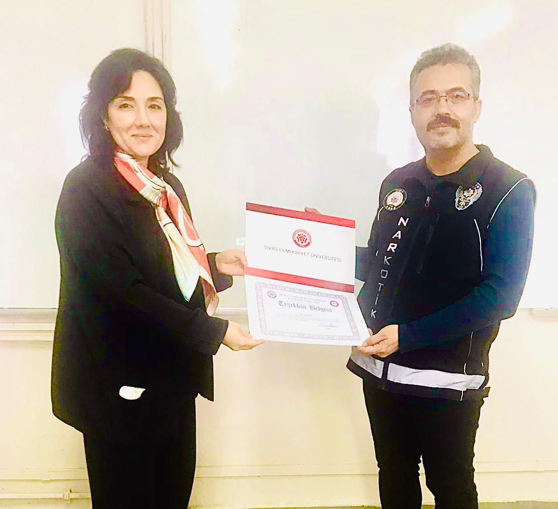 Program sonunda, Fakültemiz Dekanı Prof. Dr. Evren ALĞIN YAPAR tarafından eğitimi gerçekleştiren emniyet personeline teşekkür belgesi takdim edildi.