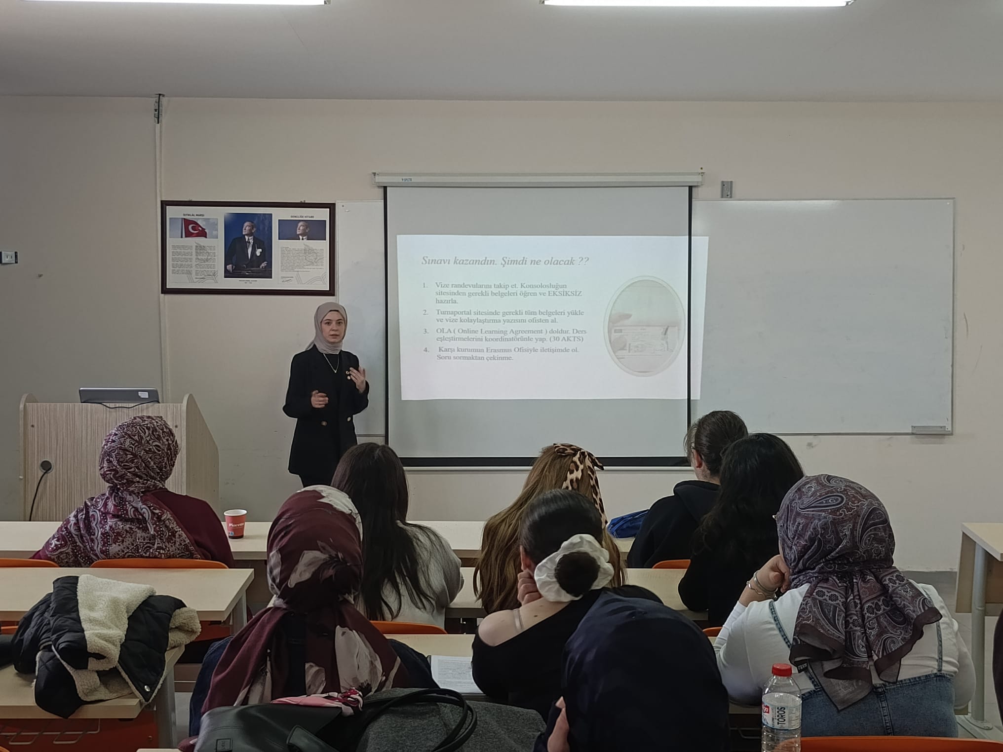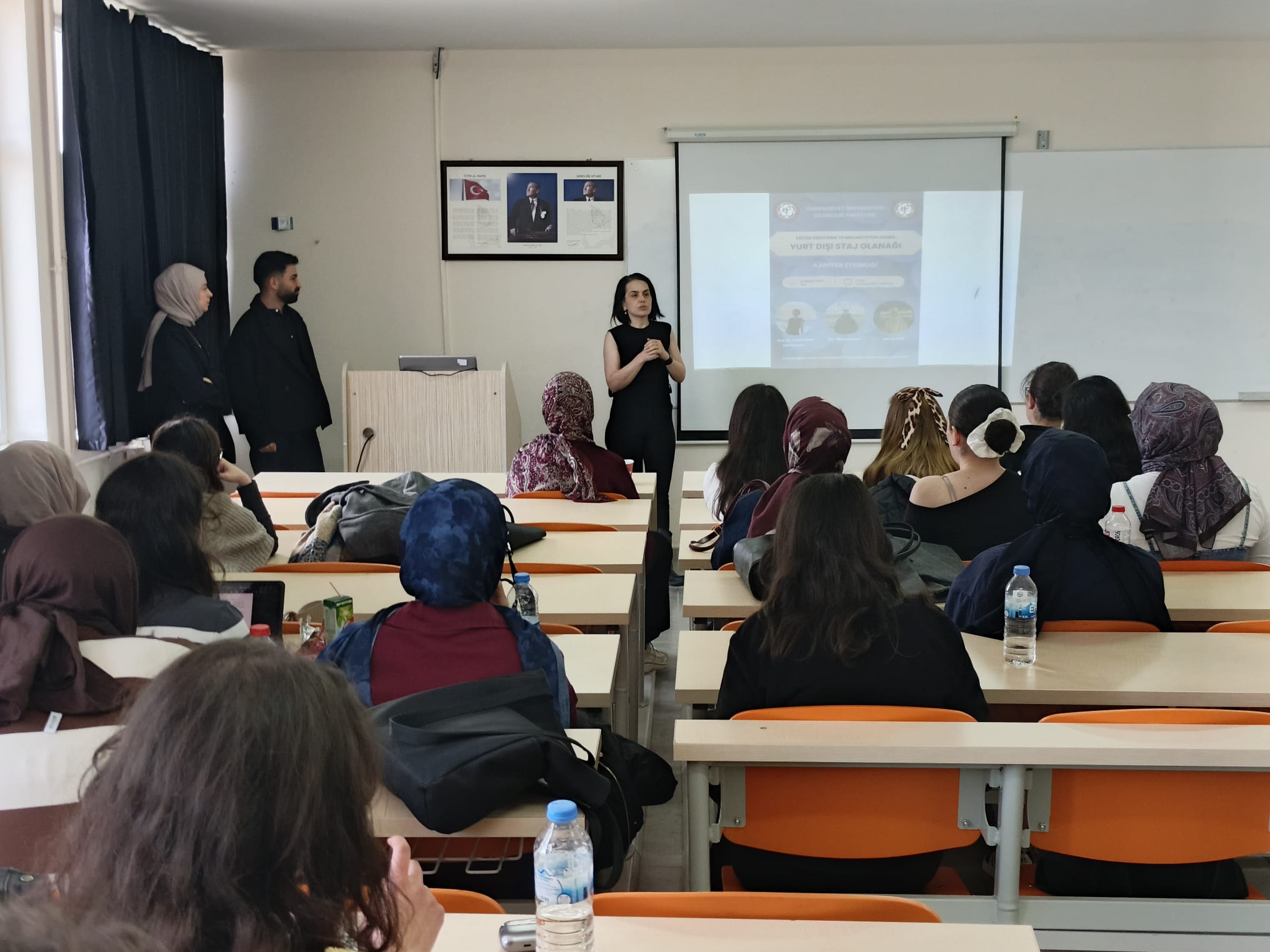 Gerçekleştirilen etkinlikte, yurt dışı staj imkanları, başvuru süreçleri ve bu süreçte dikkat edilmesi gereken hususlar ele alındı. Katılımcılara, uluslararası deneyimin mesleki gelişime katkıları hakkında kapsamlı bilgiler sunuldu.